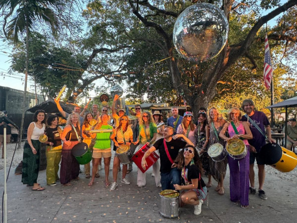 Dara Schoenwald celebrou seu aniversário ao som do MIAMI BLOCO, grupo Non Profit que ensina música para brasileiros e estrangeiros. Nesta data a aniversariante ofereceu aos convidados uma aula, onde o músico Brian Potts distribuiu instrumentos para que todos pudessem tocar e dançar. O local escolhido foi p Magic 13 Brewing, em Miami.