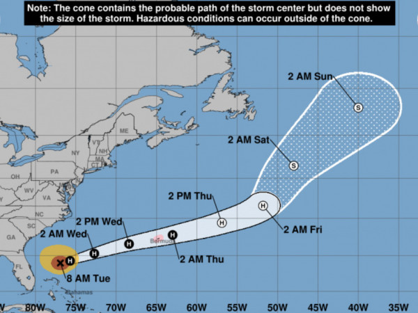 Um aviso de furacão foi emitido para Bermuda, enquanto o alerta de tempestade tropical para o noroeste das Bahamas foi suspenso na segunda-feira (29).