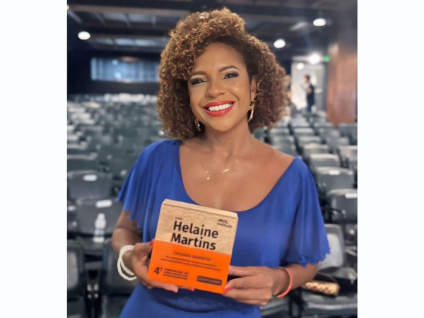 A jornalista recebeu o Troféu Helaine Martins, reconhecimento que destaca sua trajetória comprometida com as questões sociais, raciais e de direitos humanos, além de sua contribuição para ampliar vozes e perspectivas no debate público.