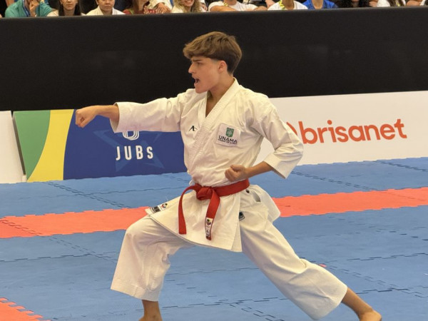 Os mais de 1.500 quilômetros que separam Belém (Pará) de Natal (Rio Grande do Norte) não foram obstáculo para a família do carateca Péricles Souza Sobrinho, de 18 anos. O estudante do segundo período de nutrição da Unama trouxe a torcida de casa para sua estreia nos Jogos Universitários Brasileiros (Jubs) e deu certo. Péricles começou a competição ganhando a prata no kata individual e ainda vai disputar outra medalha no kumite na categoria até 67 quilos. Claro que o primeiro lugar é o que a gente sempre quer, mas eu estou muito feliz com o resultado. Eu admito que eu dei o melhor, na final foi uma disputa de medalha muito boa, declarou.