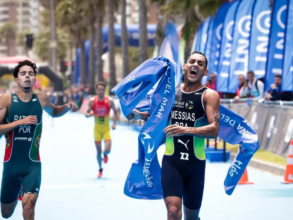 O triatlo brasileiro subiu ao topo do pódio da etapa da Copa do Mundo de Viña del Mar (Chile) no domingo (2) com o atleta Manoel Messias, de 28 anos. Em uma final emocionante, o cearense ocupava a terceira posição a um minuto do final da corrida último terço da prova - quando disparou para a vitória. Messias cruzou a linha de chegada em 49min38s, apenas um segundo a menos que o português João Nuno Batista (medalha de prata) e cinco do espanhol David Cantero (bronze).