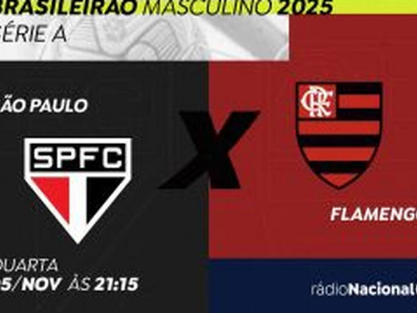 A Rádio Nacional transmite, ao vivo, nesta quarta-feira (5), o confronto entre São Paulo e Flamengo, válido pela 32ª rodada do Campeonato Brasileiro Série A.