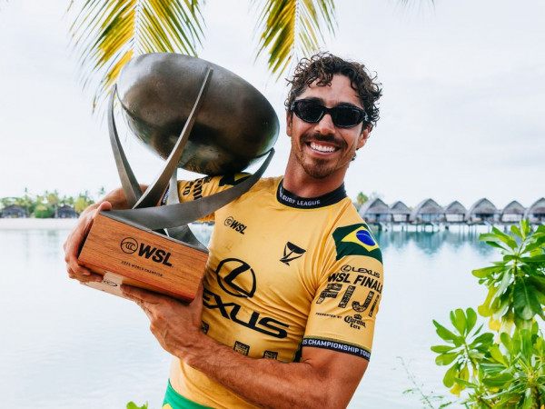 Yago Dora, que foi o campeão mundial da Liga Mundial de Surfe (WSL, na sigla em inglês), seu primeiro título na carreira.