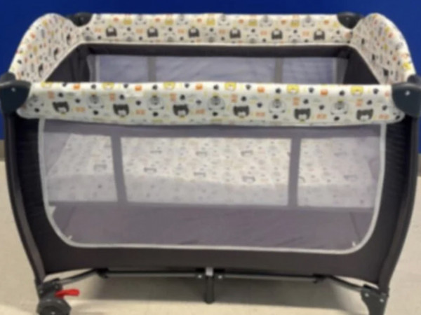 A CPSC afirma que bebês podem ficar presos sob o colchão ou entre a lateral do berço e o colchão, criando risco de lesões graves ou morte por sufocamento. Os modelos afetados têm laterais de tecido preto, painéis de tela cinza e barras superiores com estampa colorida de ursinhos, além de colchão com o mesmo padrão.