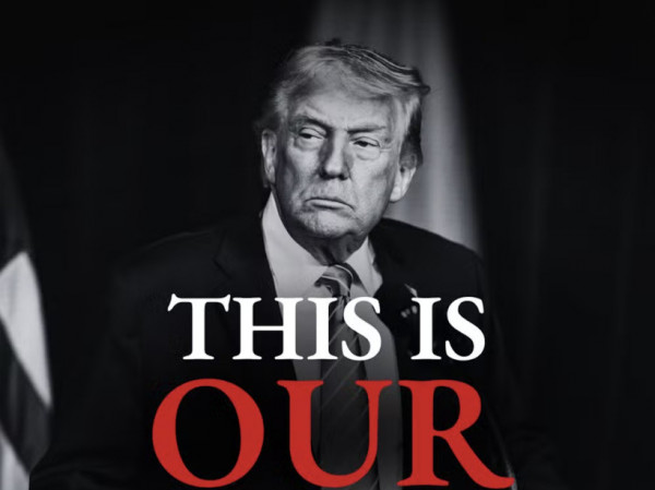 A publicação traz uma imagem em preto e branco do presidente Donald Trump, com a palavra “nosso” destacada em vermelho. Um post semelhante também foi divulgado pela conta oficial do Departamento de Estado em espanhol.